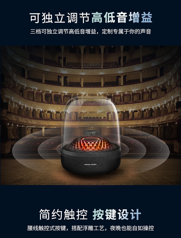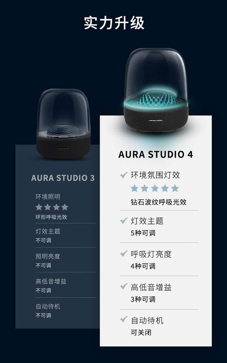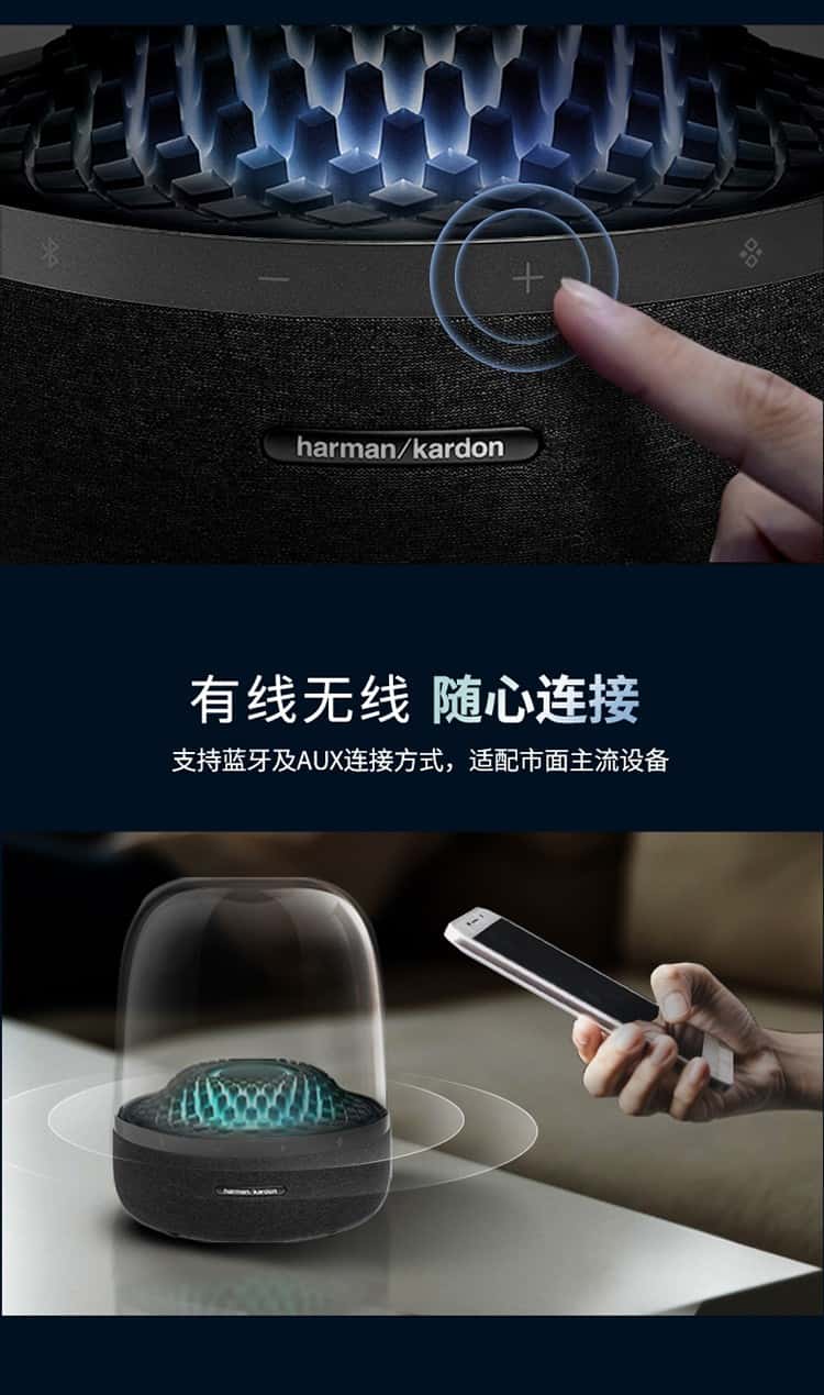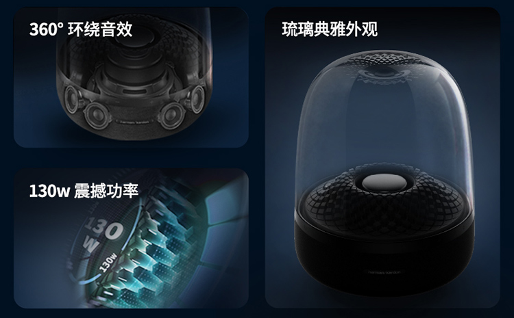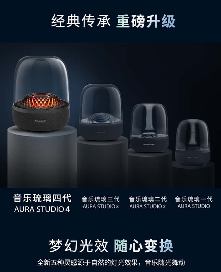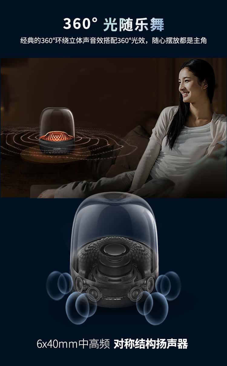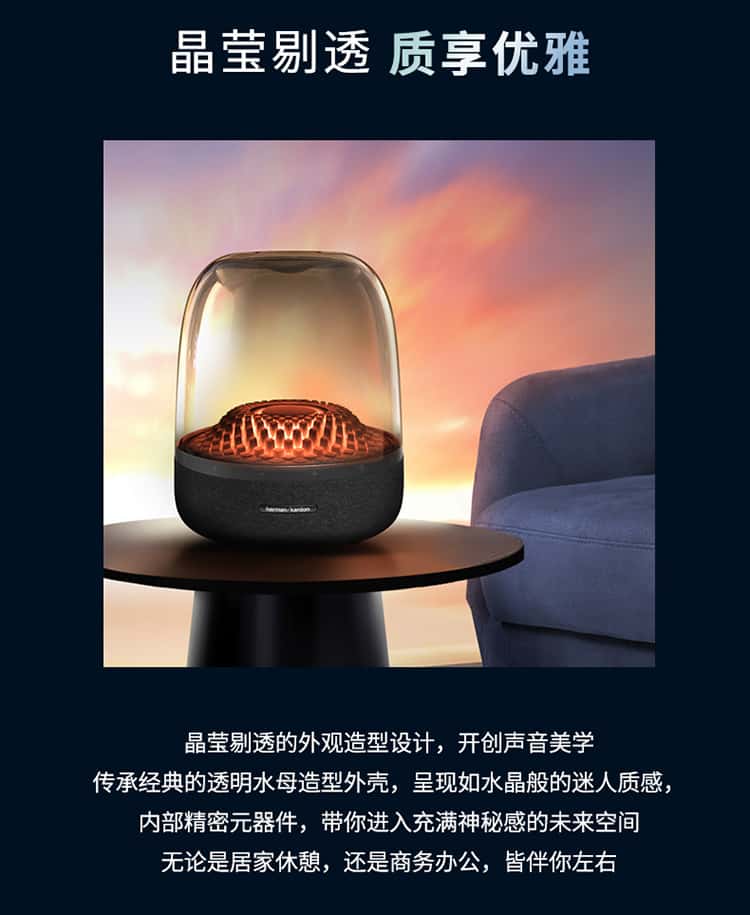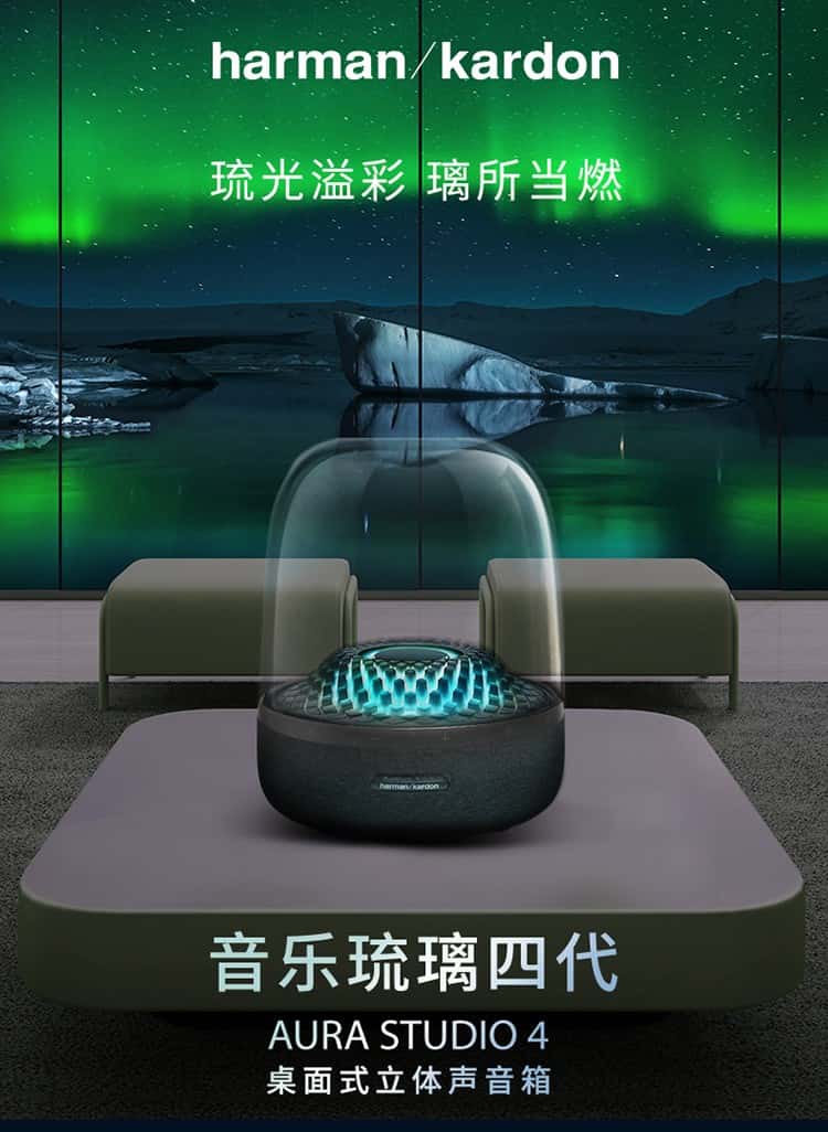 【赠 氛围灯】哈曼卡顿(Harman/Kardon) 音乐琉璃4代 桌面蓝牙音箱(黑)Aura Studio 4【赠314095,赠完即止】
