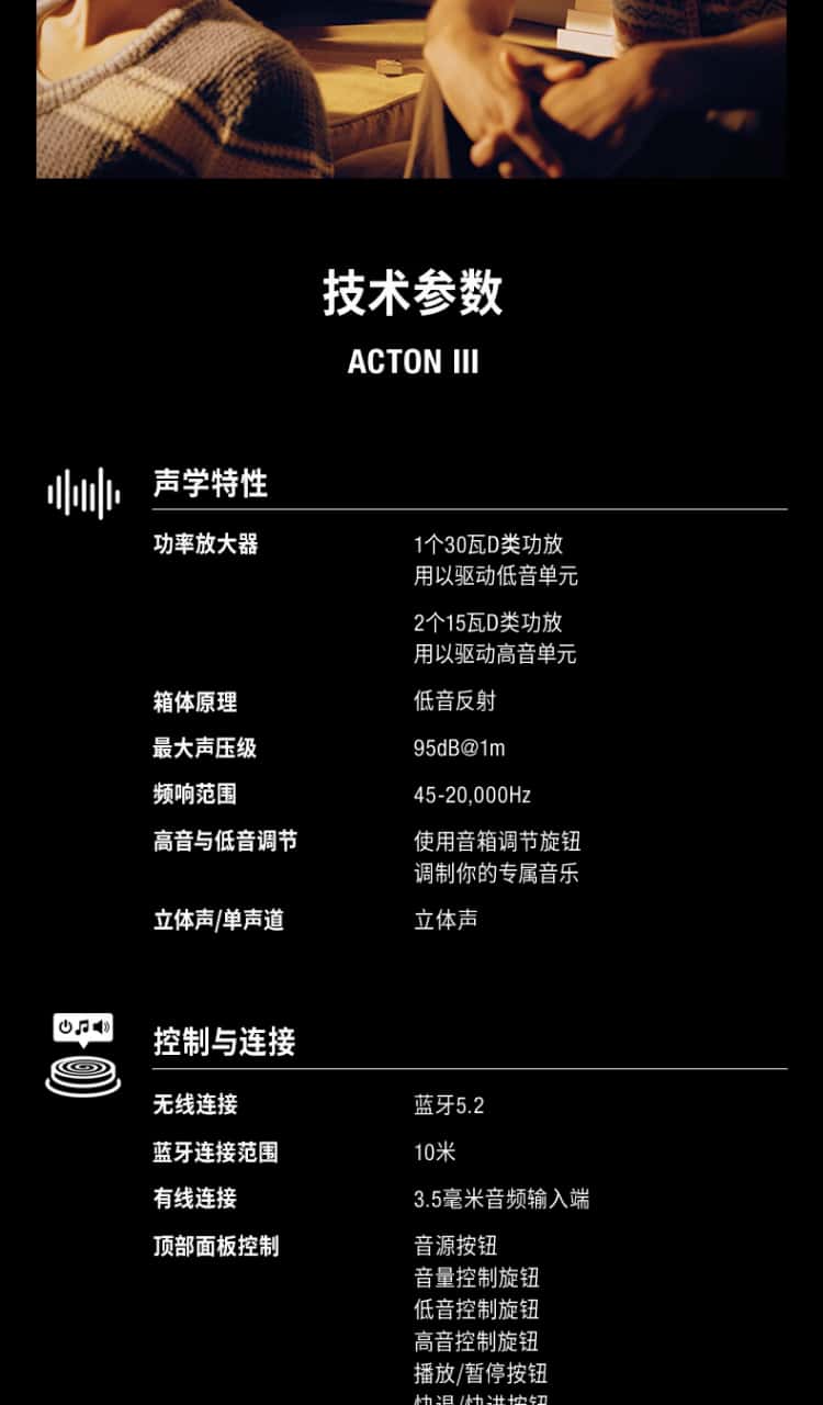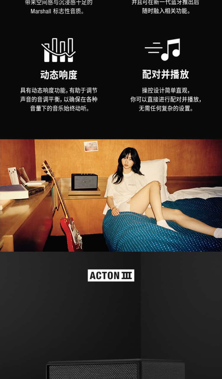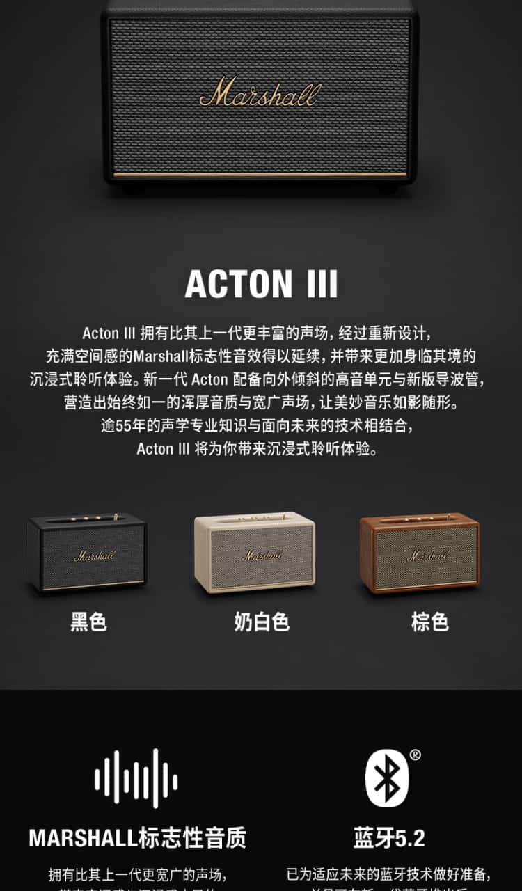 马歇尔(Marshall)ACTON III 3代无线蓝牙音箱 摇滚家用重低音音响(奶白色)