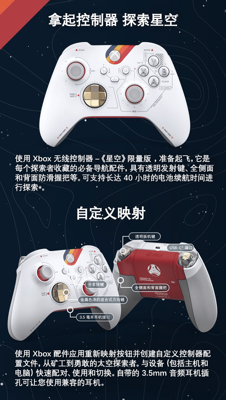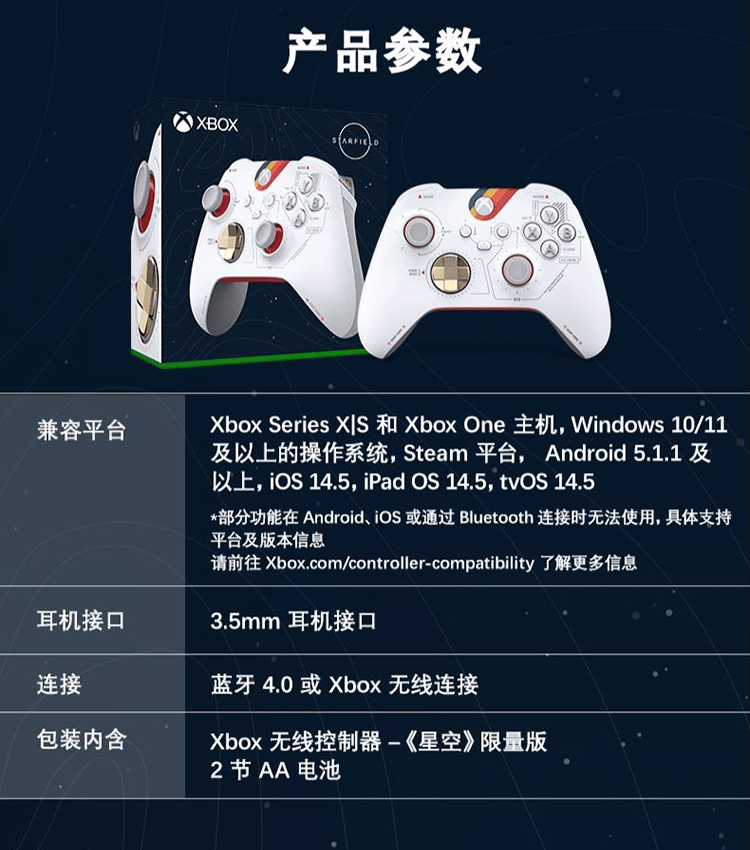 QAU-00110(白色)微软XboxStarfield星空限量版无线控制