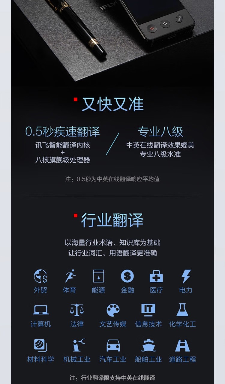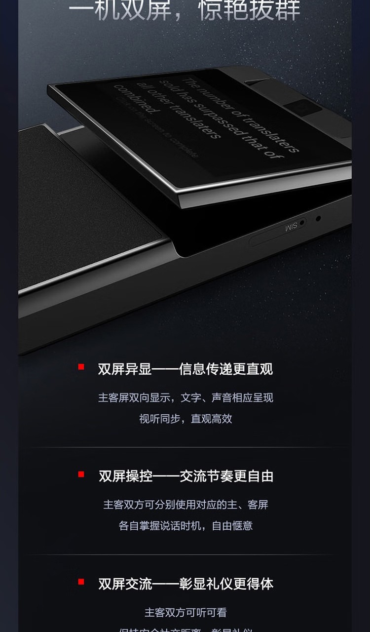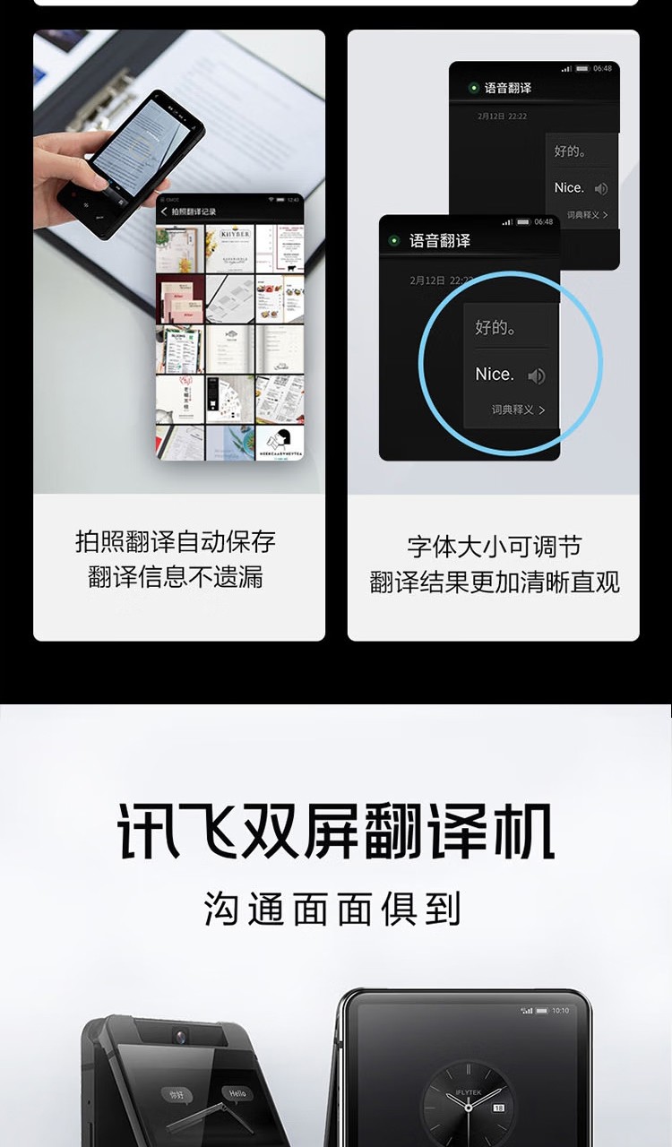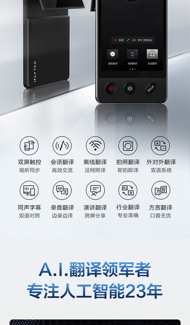 科大讯飞(iFLYTEK)双屏翻译机多语种离线翻译器 同声字幕翻译笔出国旅游口语实时翻译神器AIT-P10(商务黑)