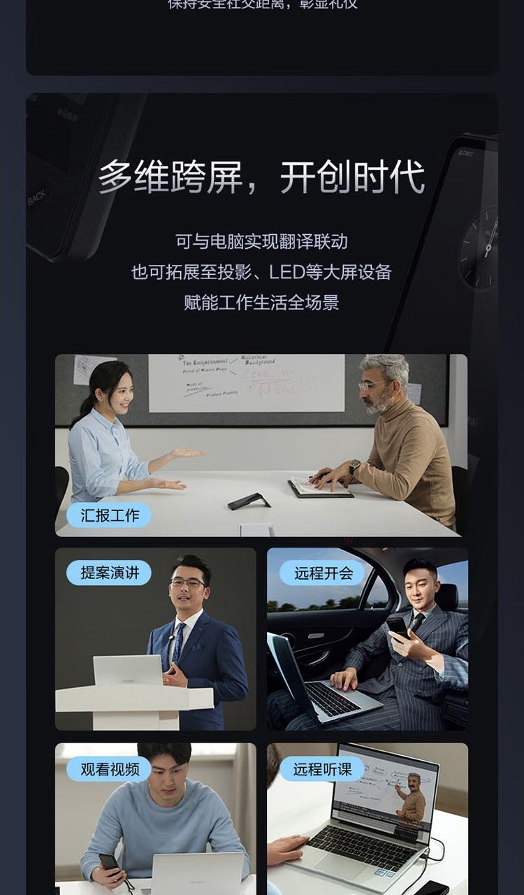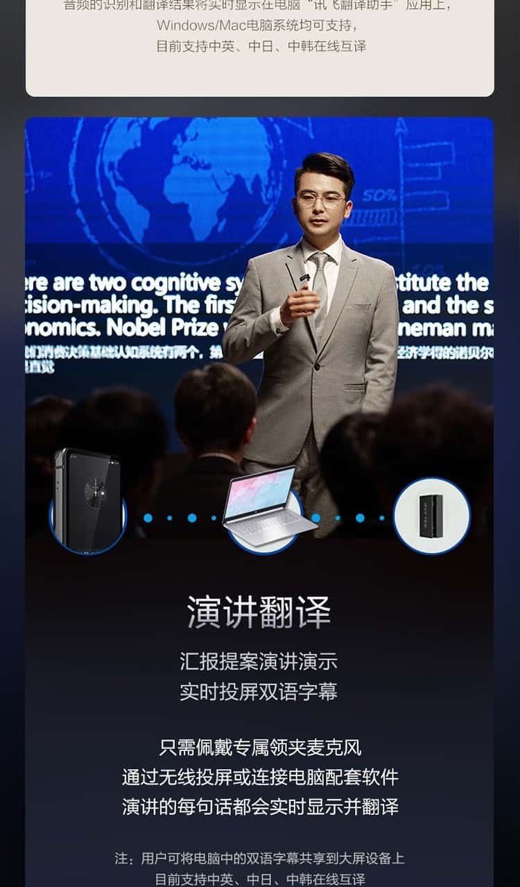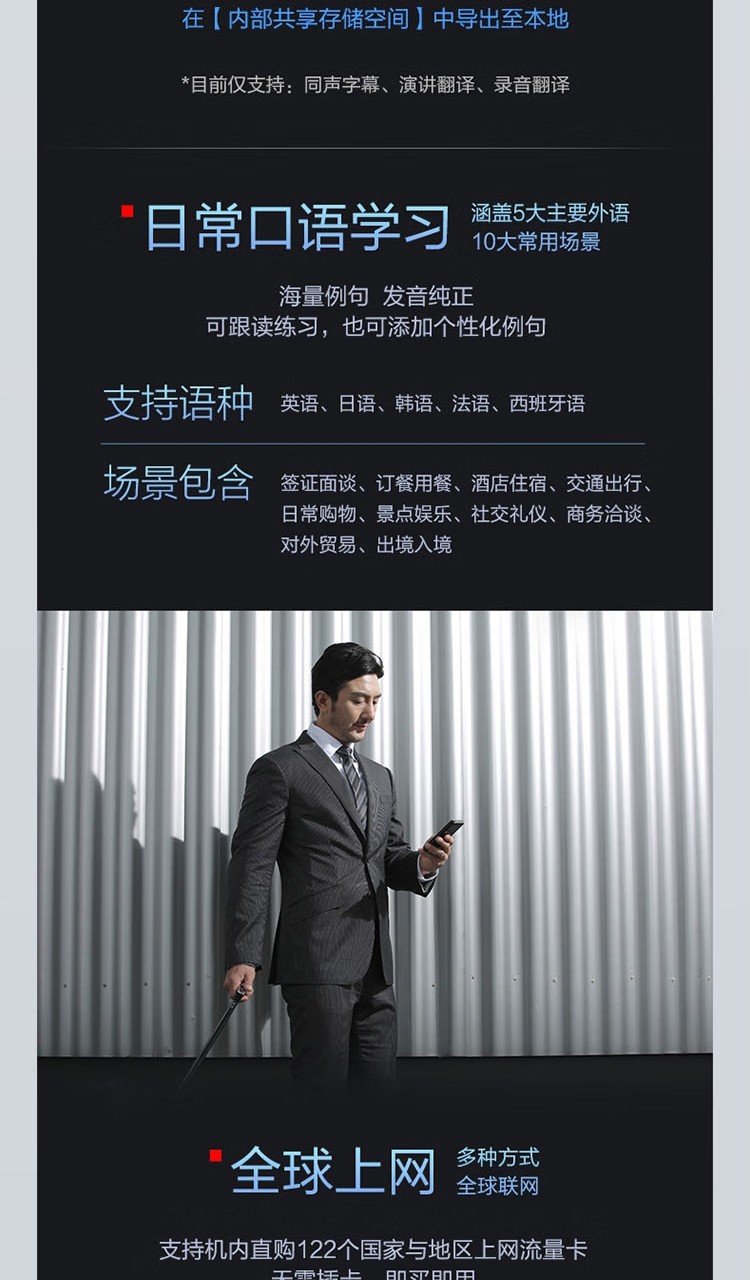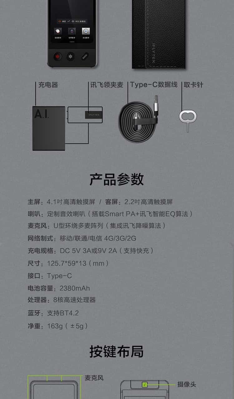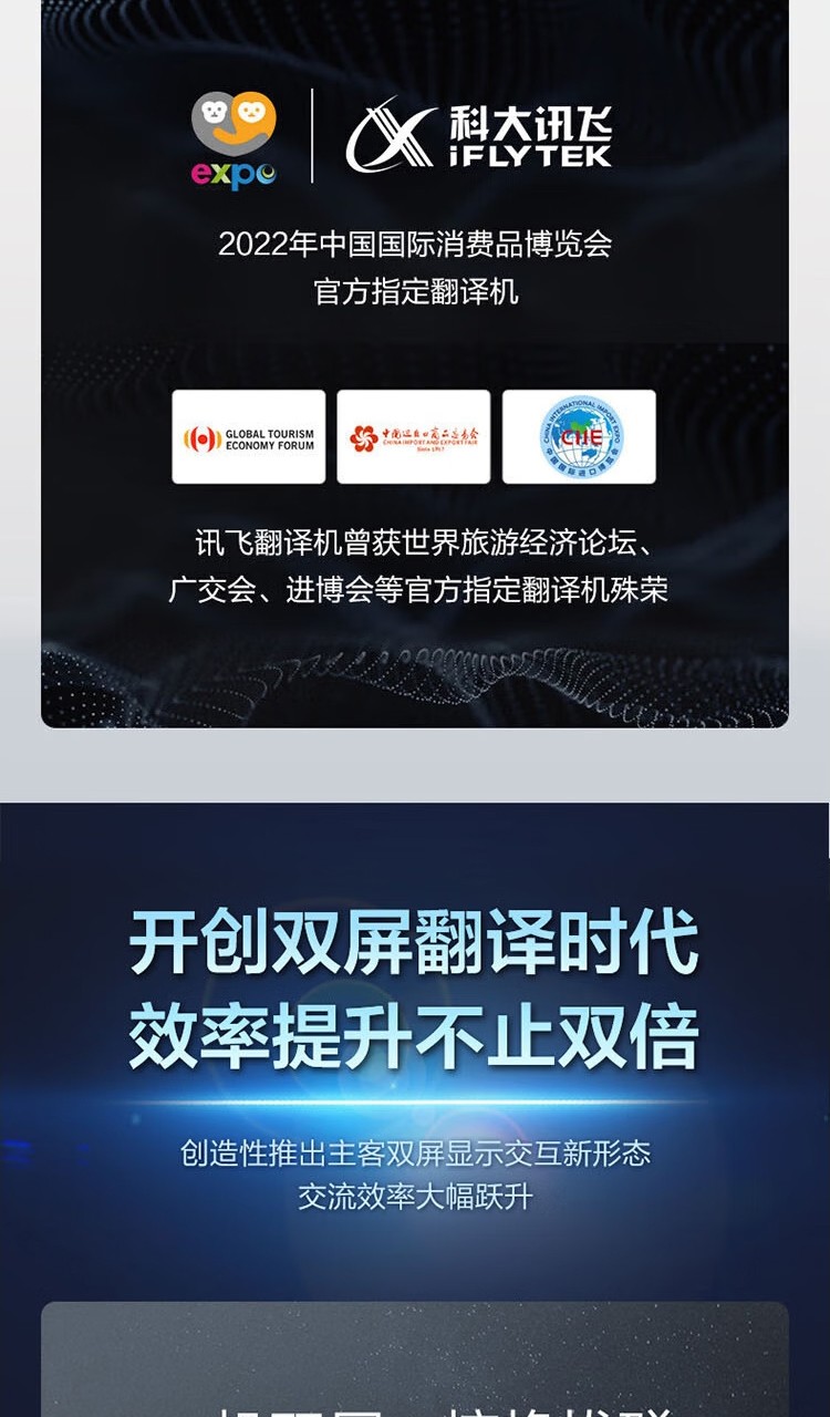 科大讯飞(iFLYTEK)双屏翻译机多语种离线翻译器 同声字幕翻译笔出国旅游口语实时翻译神器AIT-P10(商务黑)