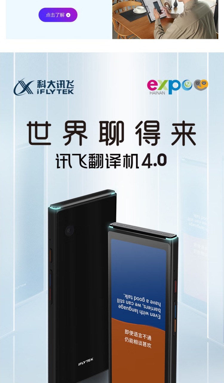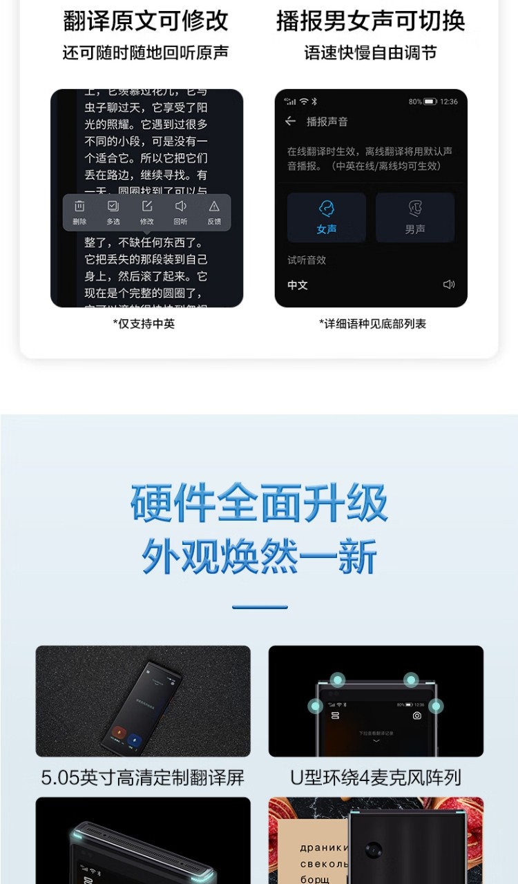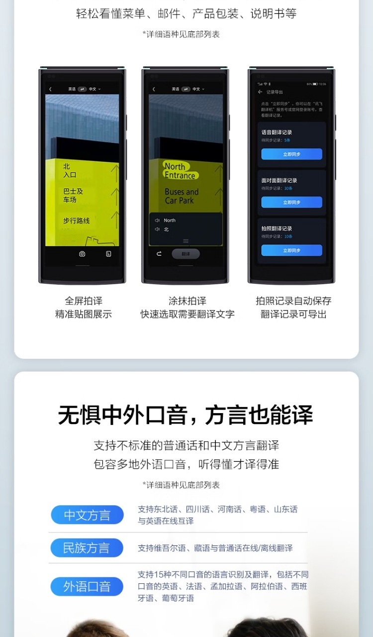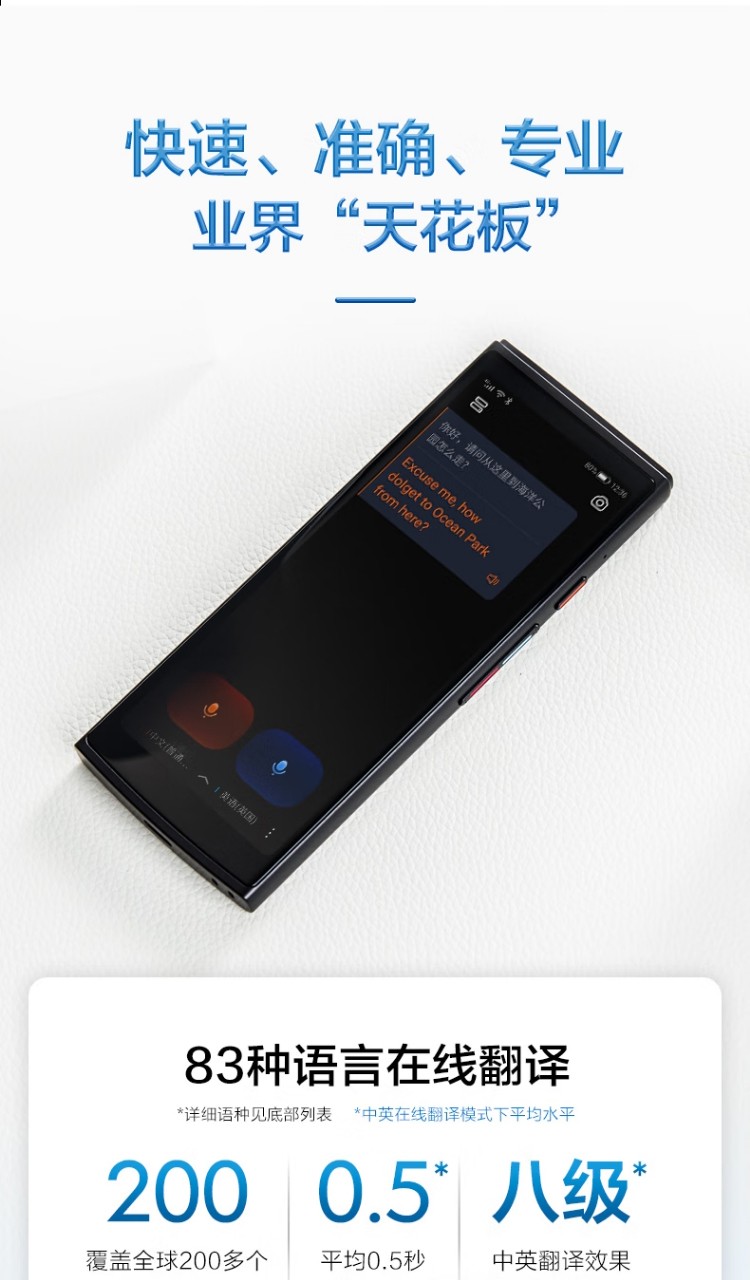科大讯飞(iFLYTEK) 翻译机4.0 多语种离线语音拍照智能翻译器 翻译笔出国旅游口语实时翻译神器(商务黑)