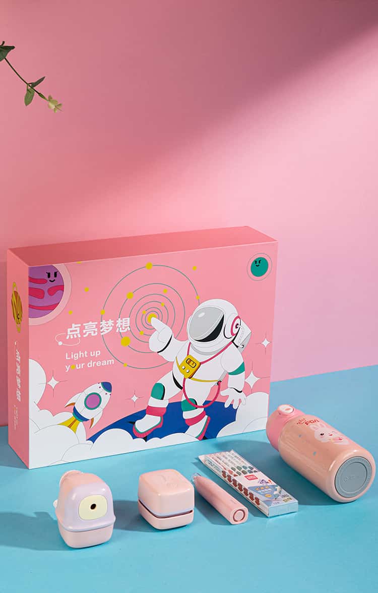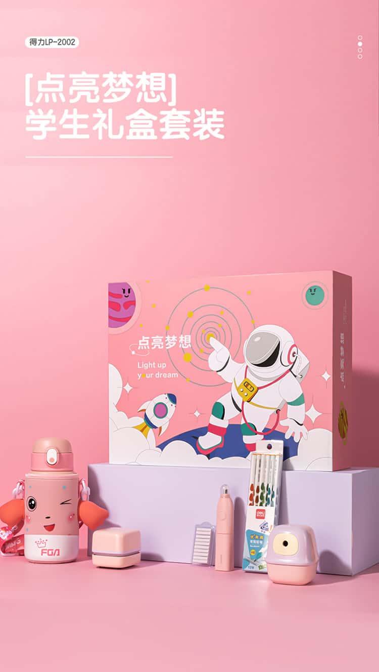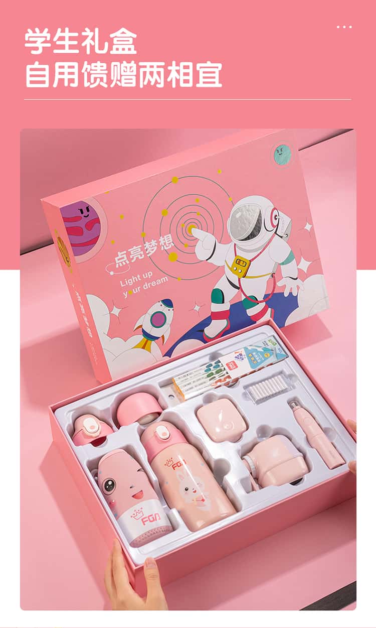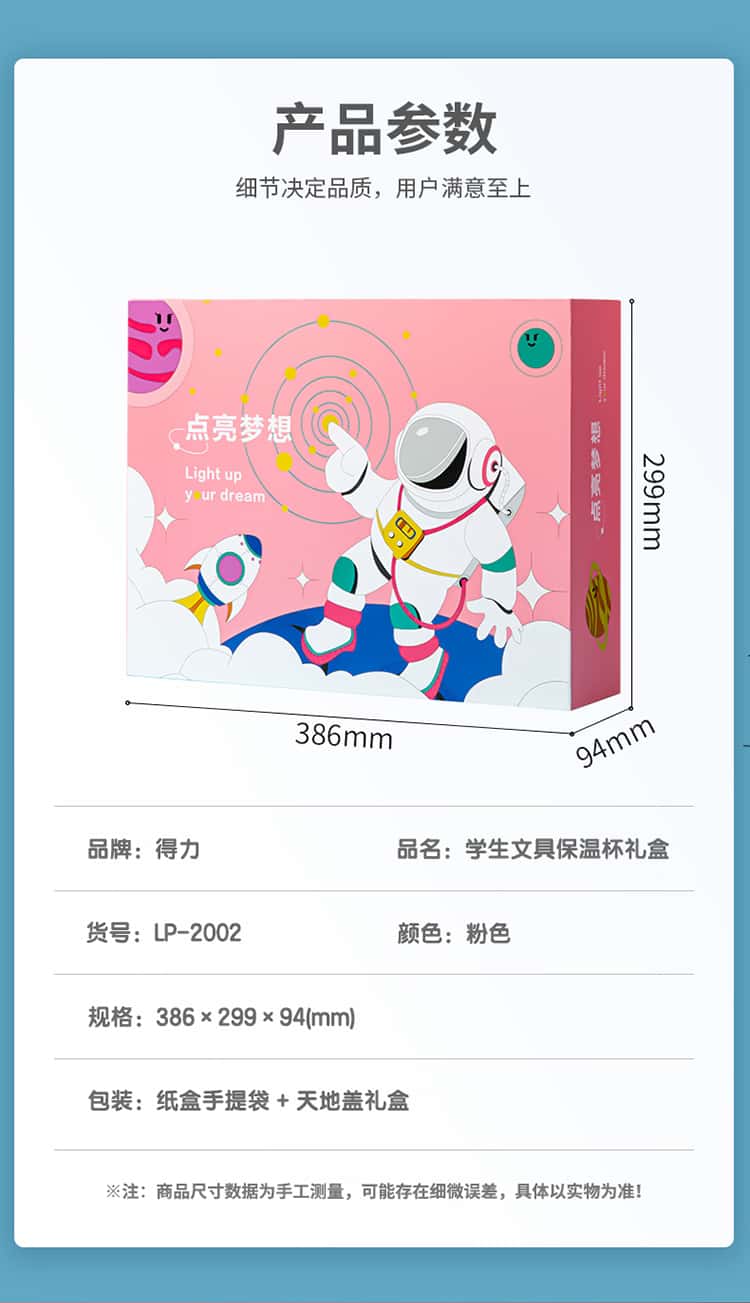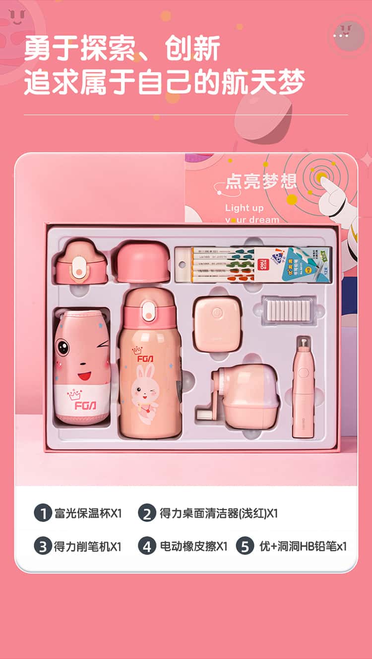 得力(deli)学生文具保温杯礼盒套装LP-2002(粉色)