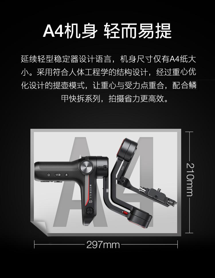 智云(zhi yun)相机稳定器 微单单反手持云台 三轴防抖 WEEBILL S(黑色)