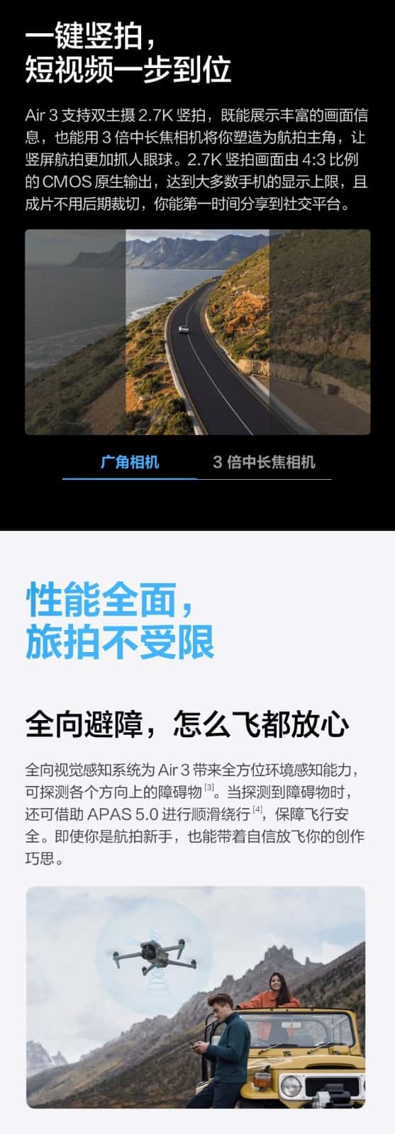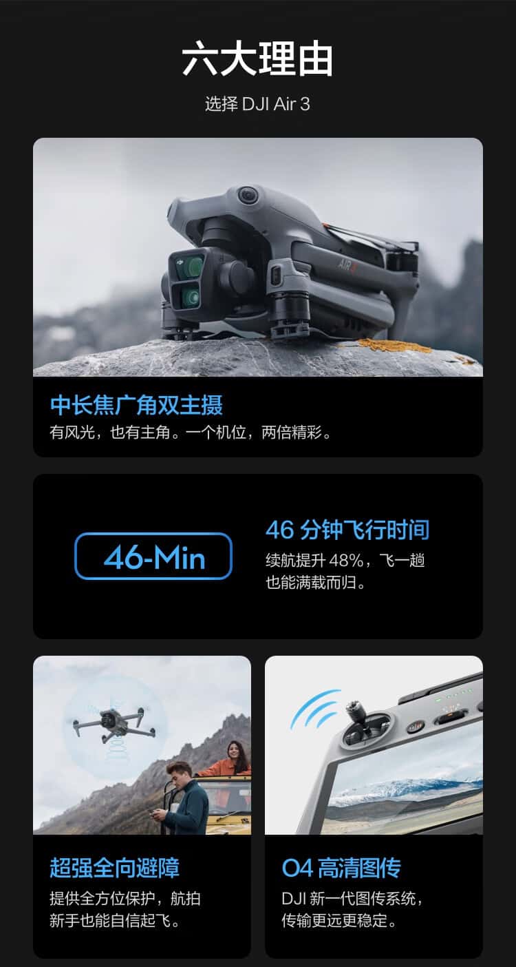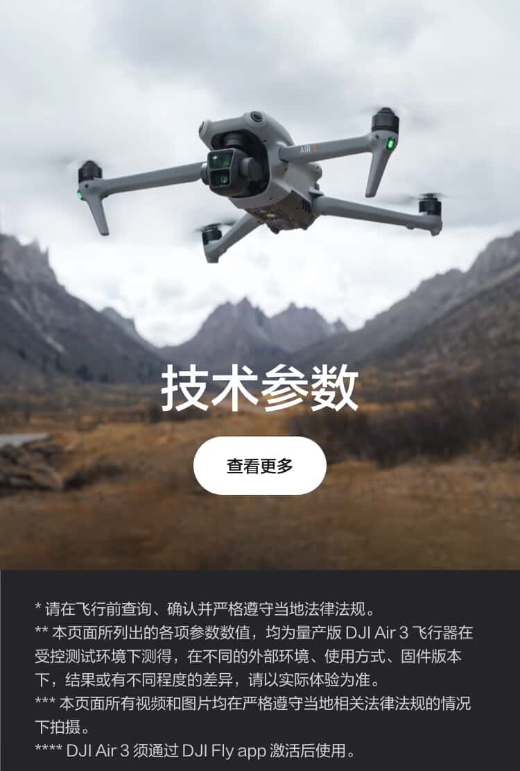 【新品预订】大疆(DJI)Air 3 广角双摄旅拍 高清专业航拍无人机 单机(RC-N2)【无货退款】