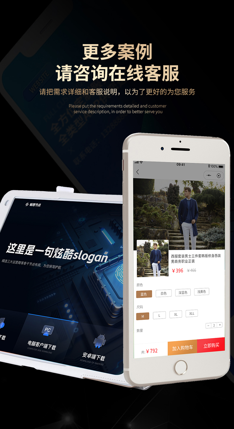 4、需要高端网站定制的客户,本店除了模板建站外,还支持网站设计定制,仿站,网站功能定制,网站组件定制服务,PSD网站开发切图等服务。更强的开发技术,更高的设计水平。专业的事情交给我们做。详情咨询客服